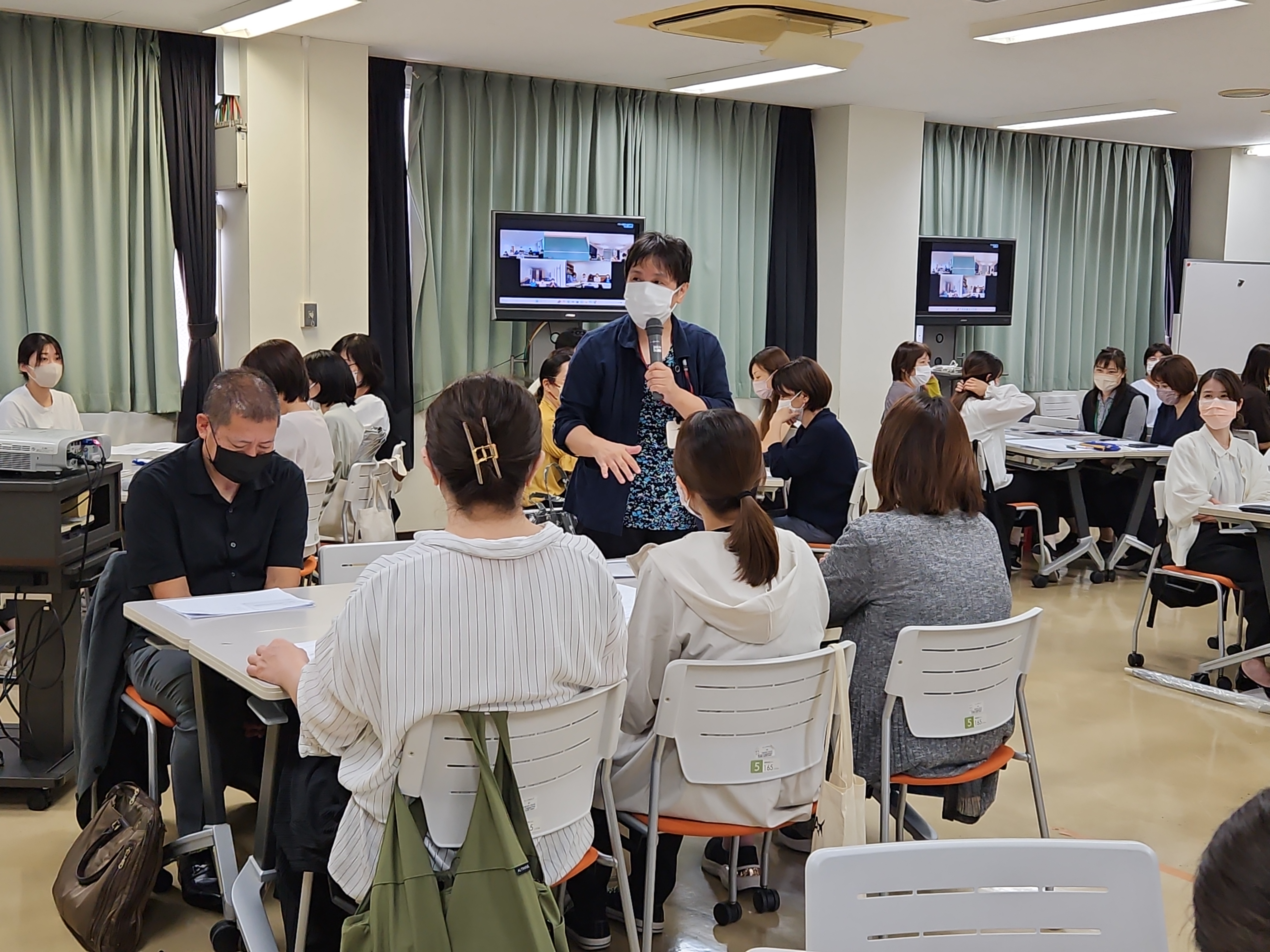 教員の育成」で、「実習場面(体験)を学生にとって価値ある「経験」にする関わりとは ~指導場面を振り返り、関わりを再考する~」と研修テーマを設定し、学生との関わりの場面にこだわった研修を開催しました。徳之島病院 奄美病院からはオンライン(zoom)でご参加頂き、各施設の看護管理者、実習指導者、教員合わせて98名の参加がありました。