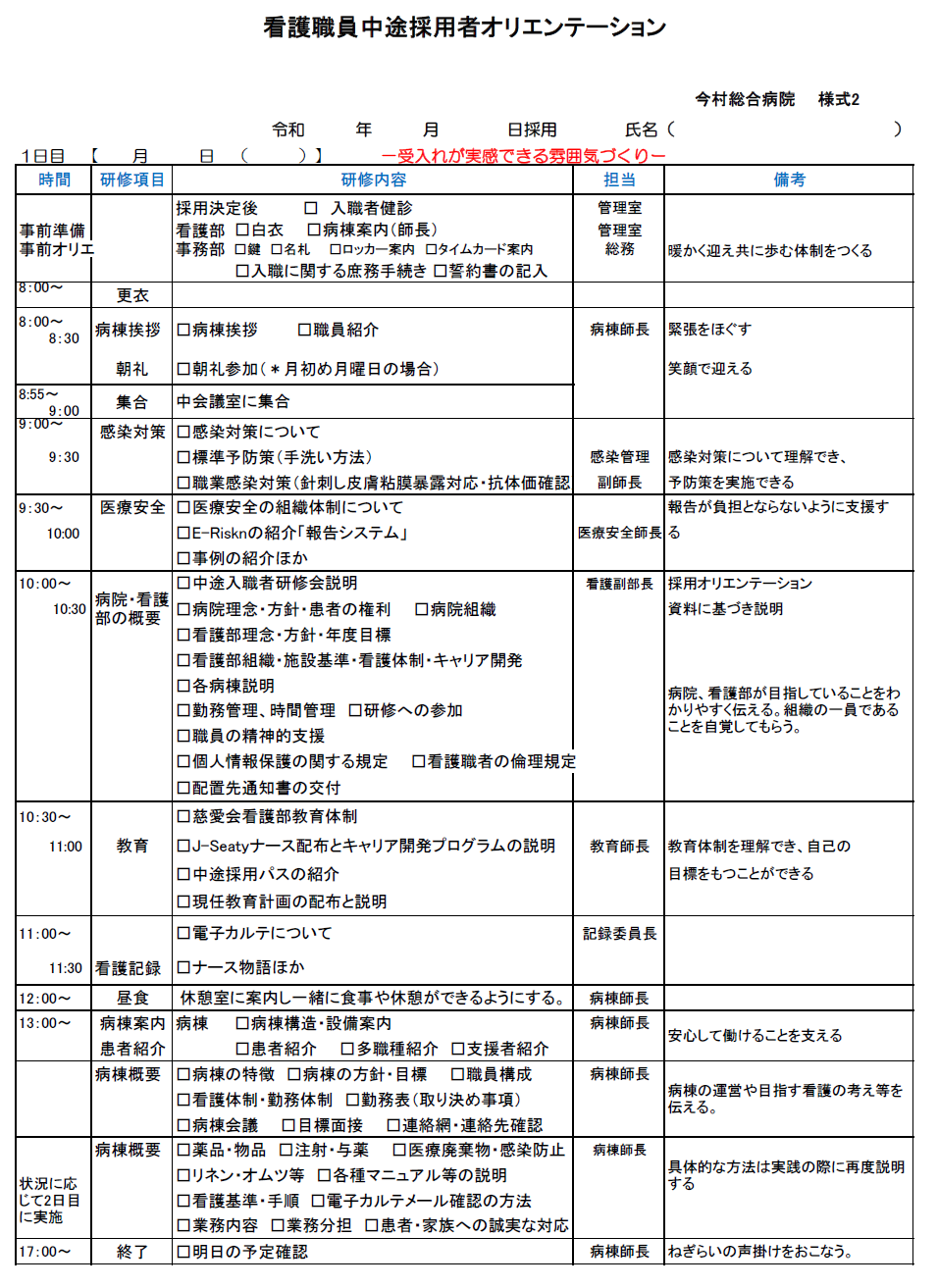 慈愛会では中途採用オリエンテーションプログラムがあります。転職、またはブランクがあってもスムーズに現場で勤務できるように入職時にサポートいたします。