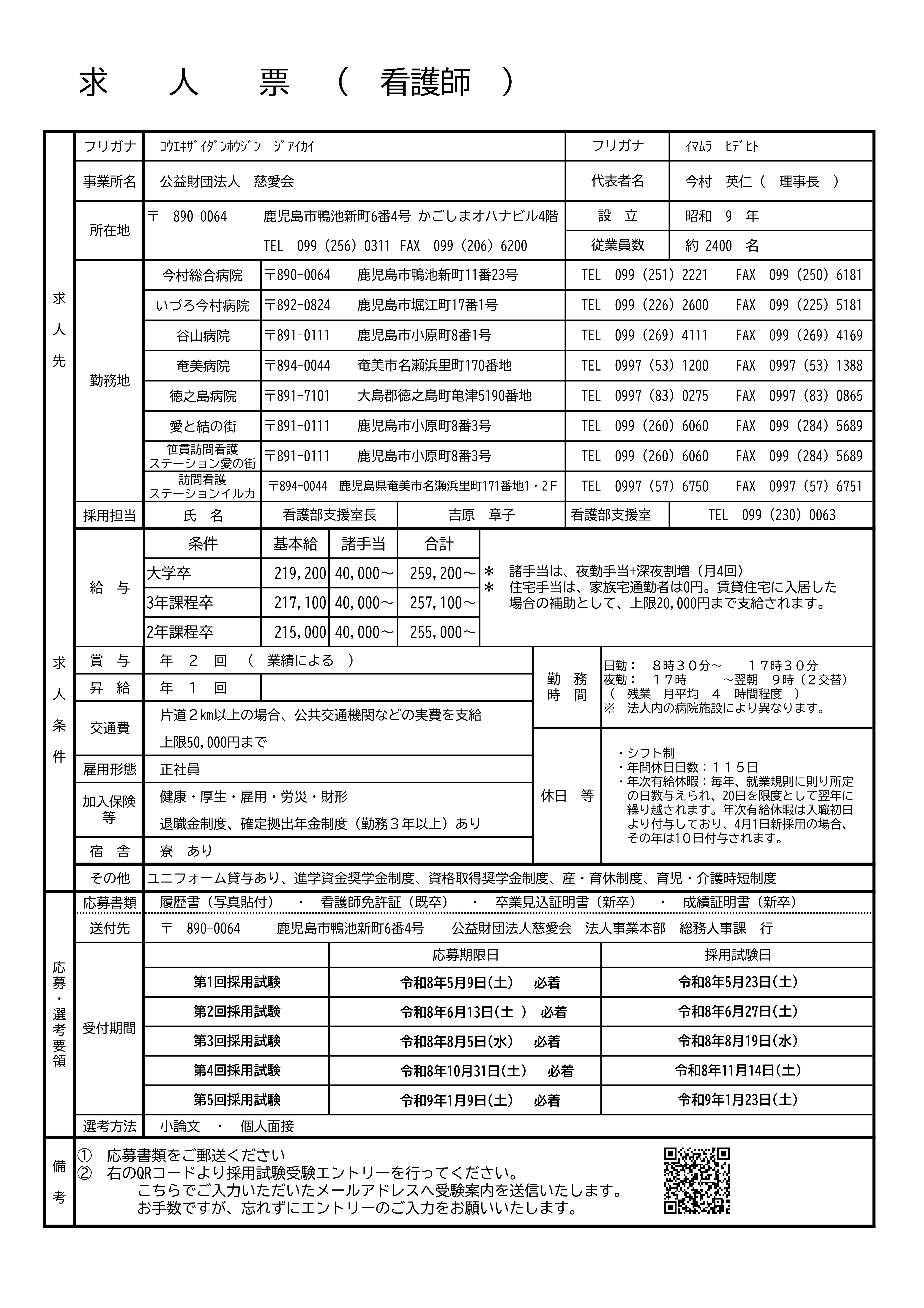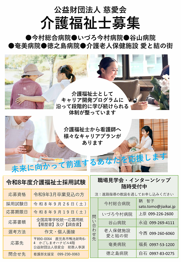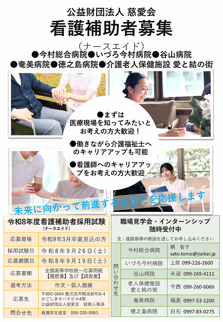 病院見学会、インターンシップについては各病院の看護部長、または看護部支援室℡099-230-0063までお問合せ下さい。