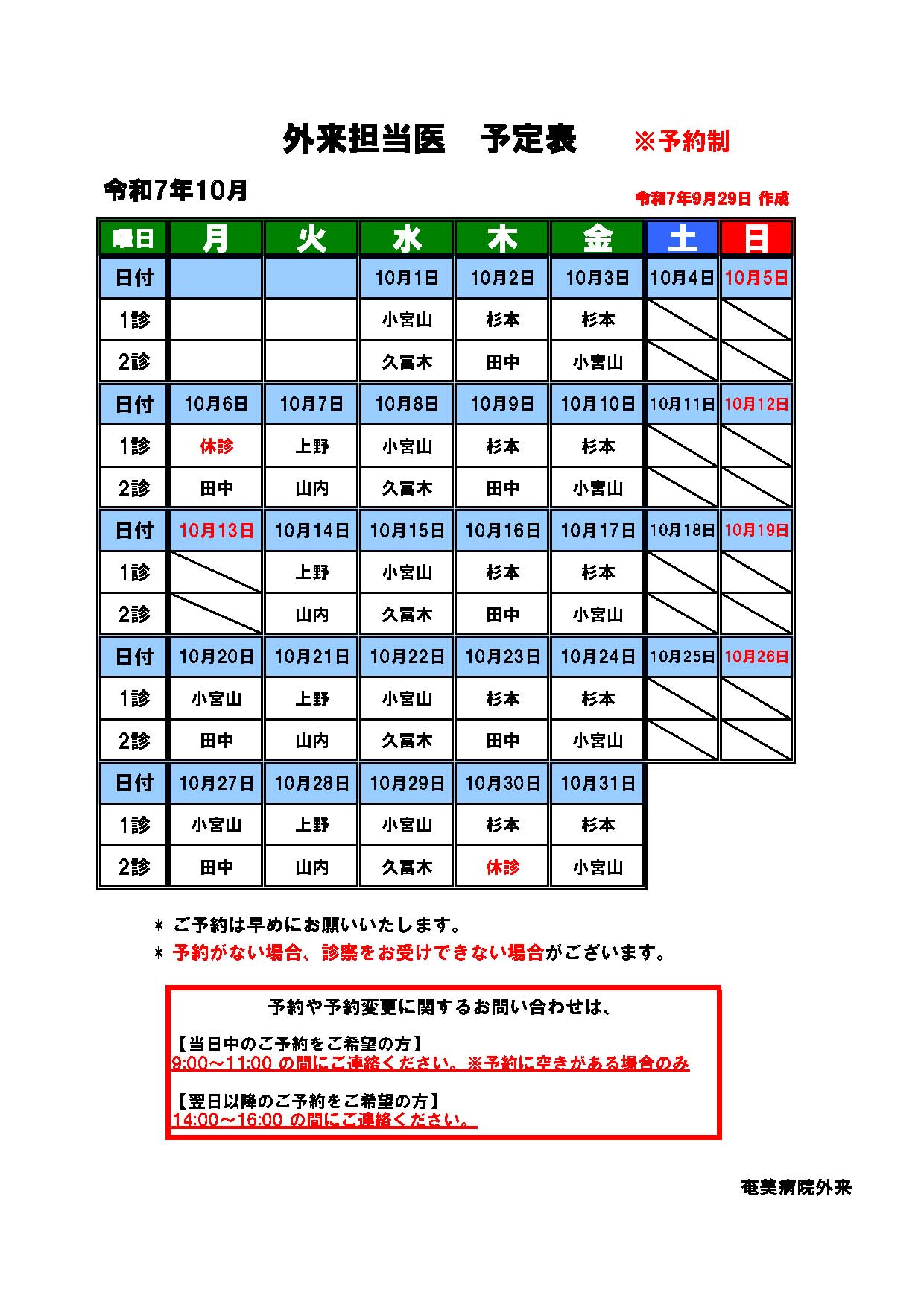 1診 | 小宮山 | 上野 | 小宮山 | 杉本 | 杉本 | - |
