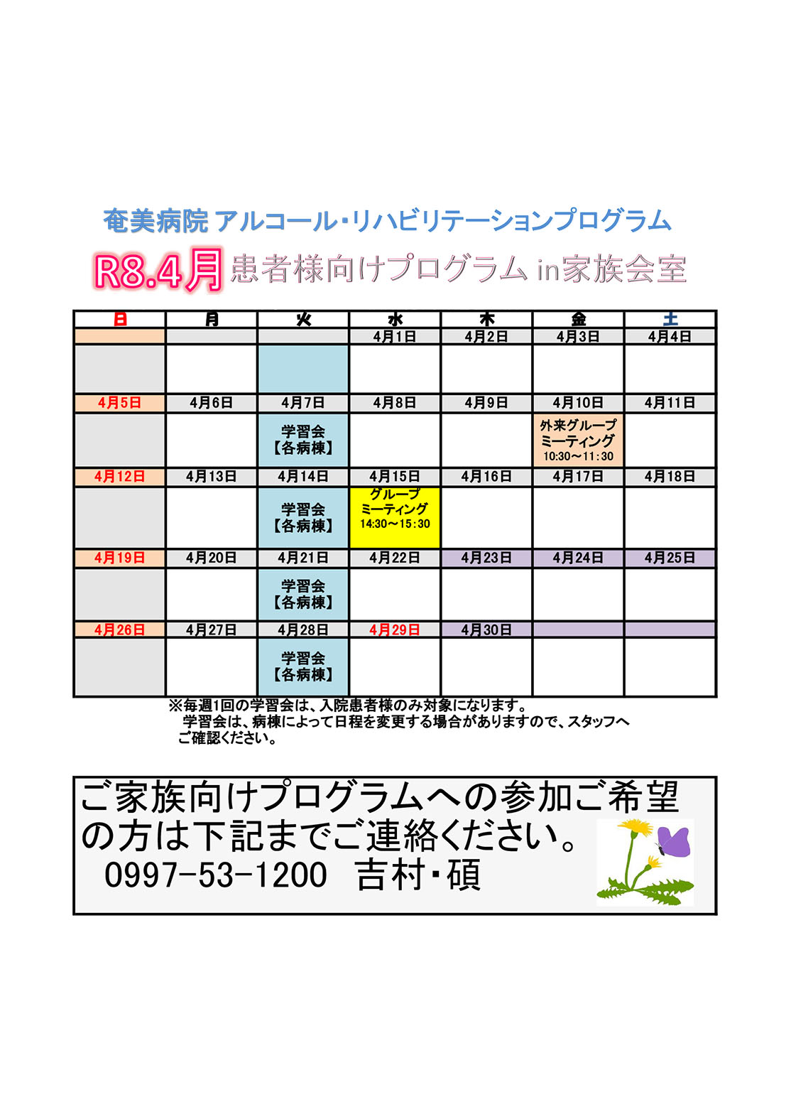 お問い合わせ先 奄美病院 0997-53-1200 担当 吉村・碩