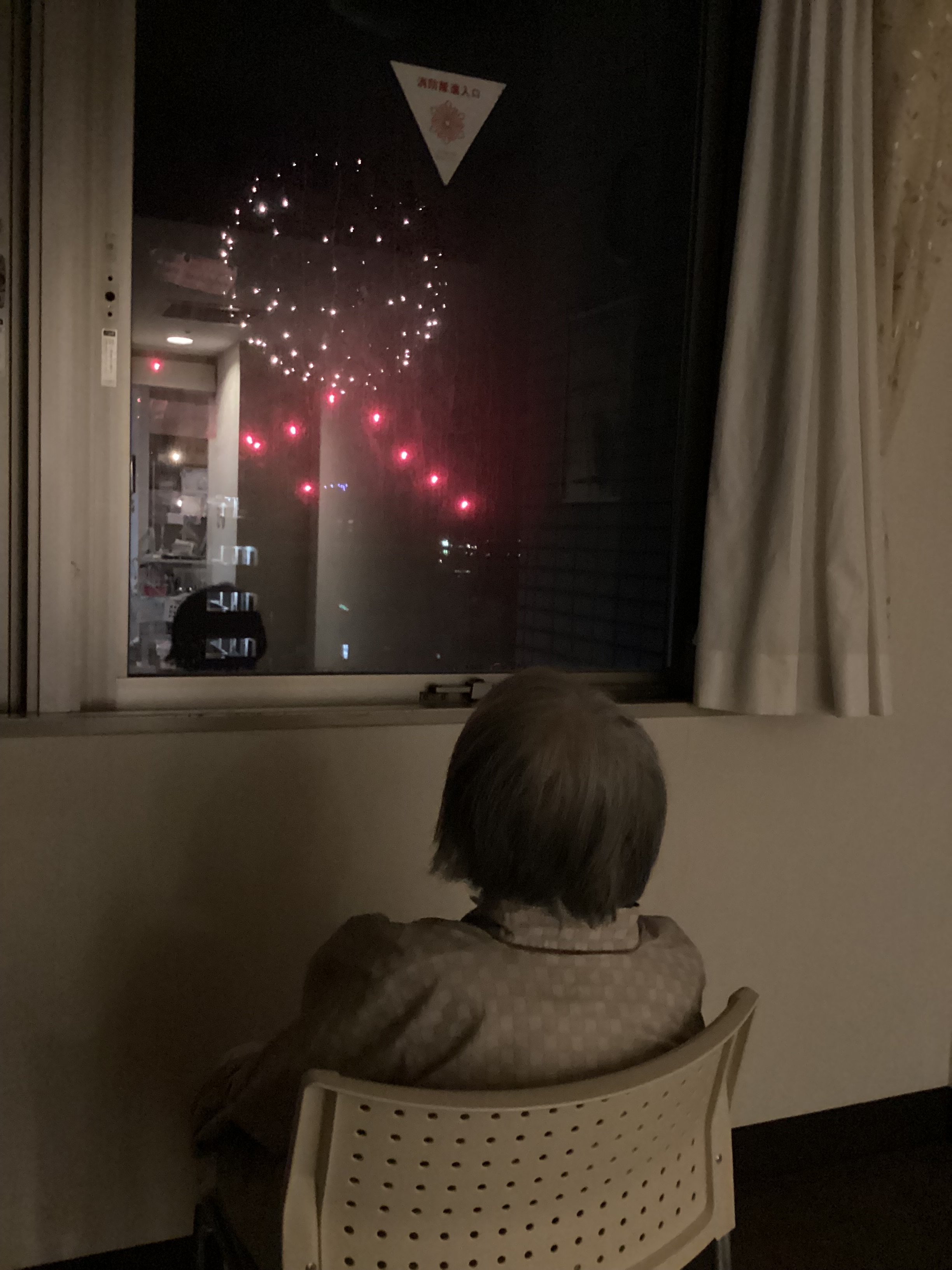 また、8月下旬には鹿児島のビッグイベント「サマーナイト花火大会」があり、今年も病室の1部を開放して、患者様にも夏の夜空に咲く花火を楽しんでもらいました。