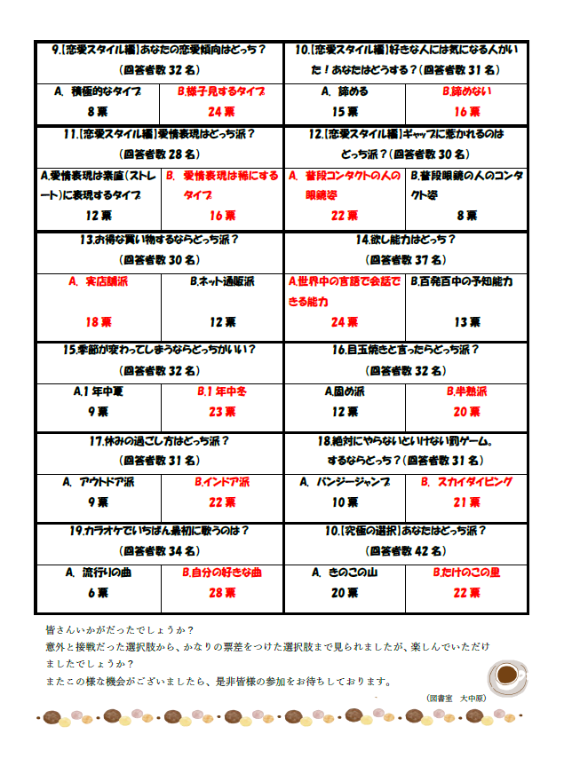 毎週火曜日 午後2:00~2:40(巡回図書)