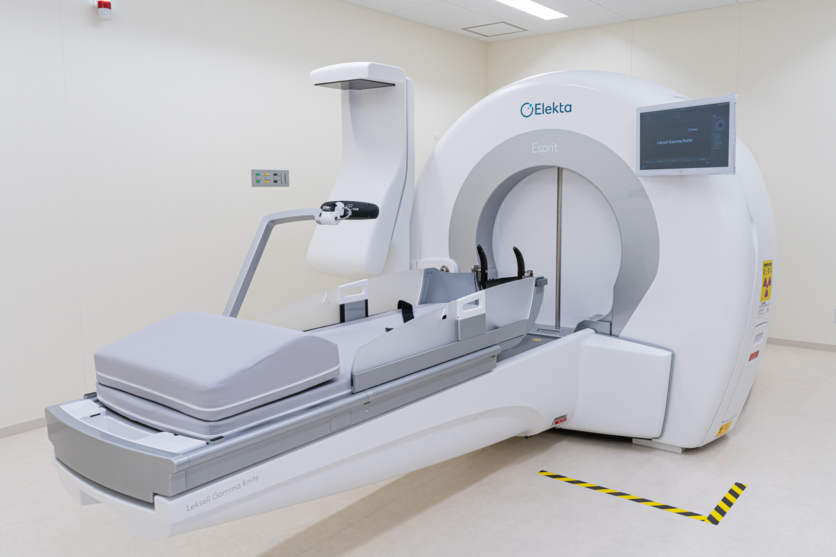 ガンマナイフは、頭部専用の定位放射線治療装置で、脳腫瘍や脳血管異常、三叉神経痛などの治療を行います。最新機種「Esprit」は、日本で4番目の導入となり、マスク固定により痛みのない治療が可能です。高精度かつ低侵襲で、分割照射により大きな病変にも対応できます。