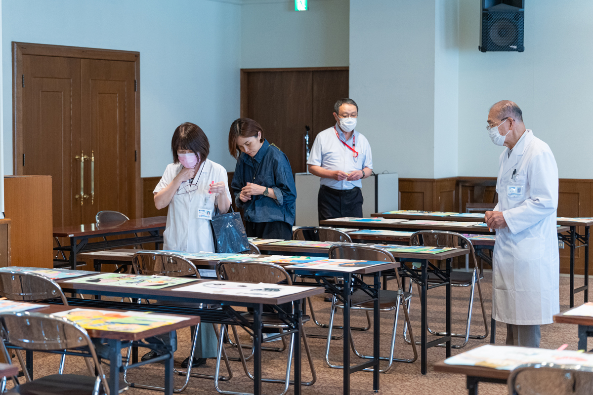 一枚一枚の作品には、病院で働く人へのあたたかいまなざしや、未来への希望が込められており、審査にあたった職員一同、心が明るくなる思いで拝見しました。