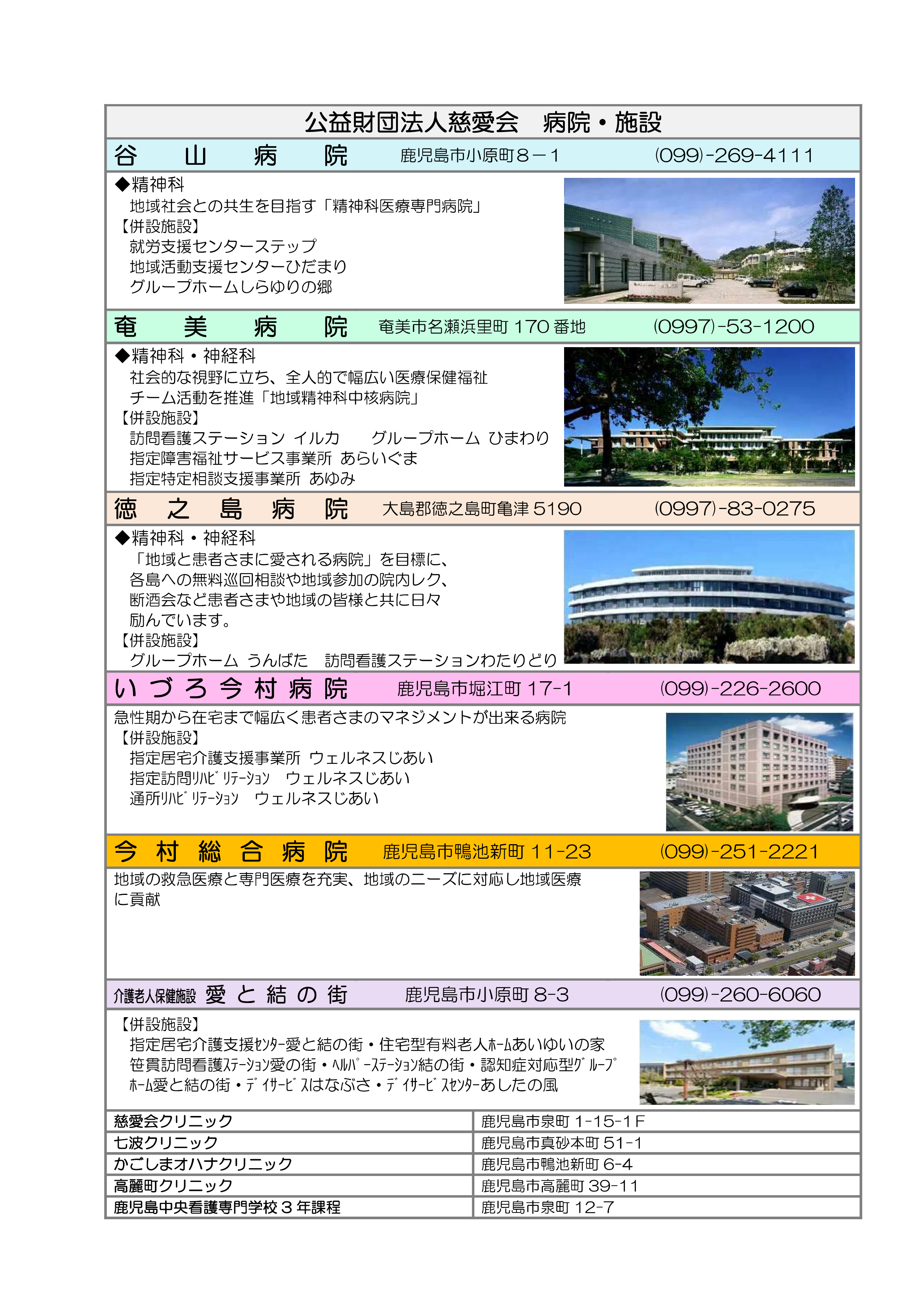 谷山病院(鹿児島市小原町) 【変更の範囲】 法人の定める病院・施設 |