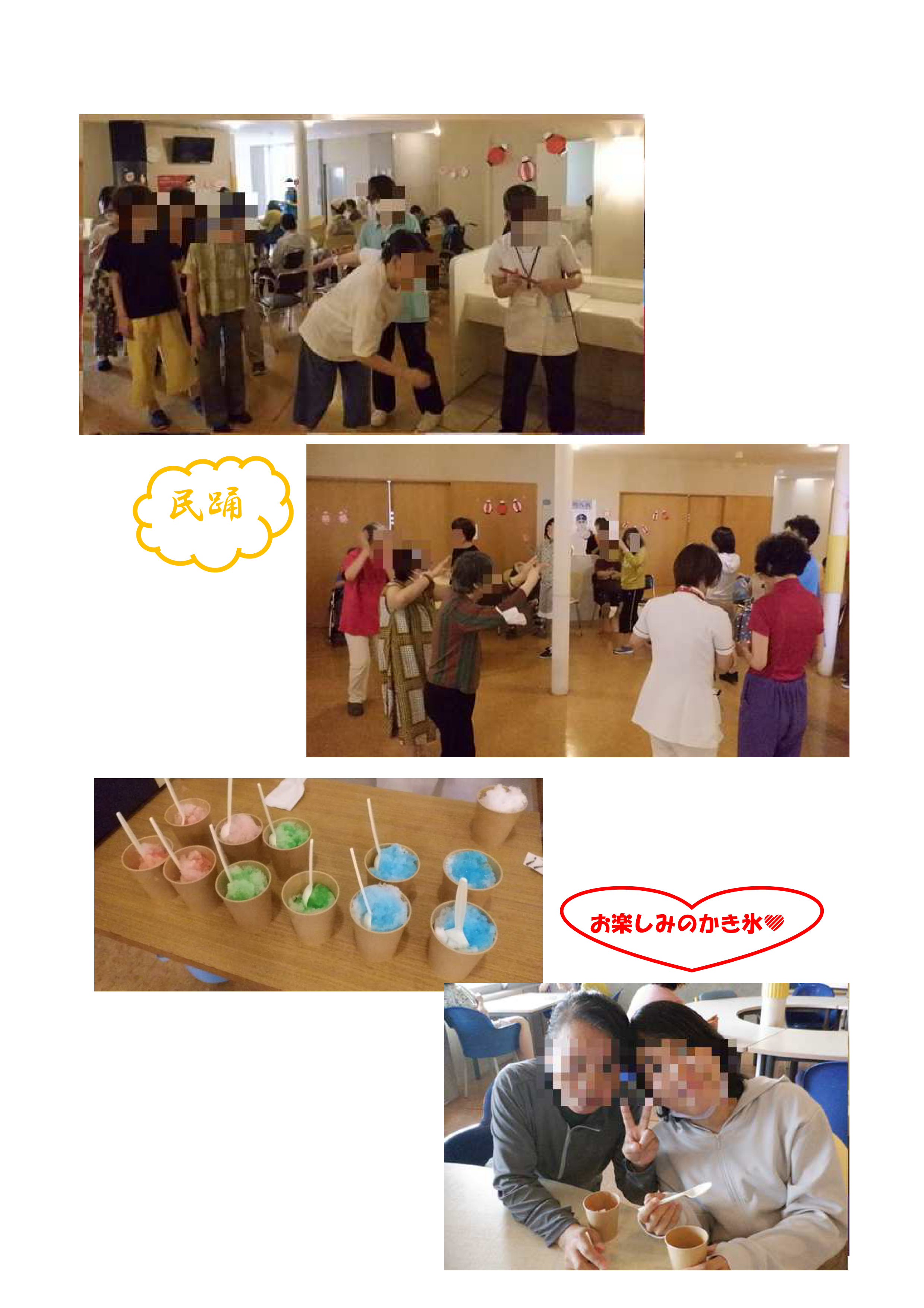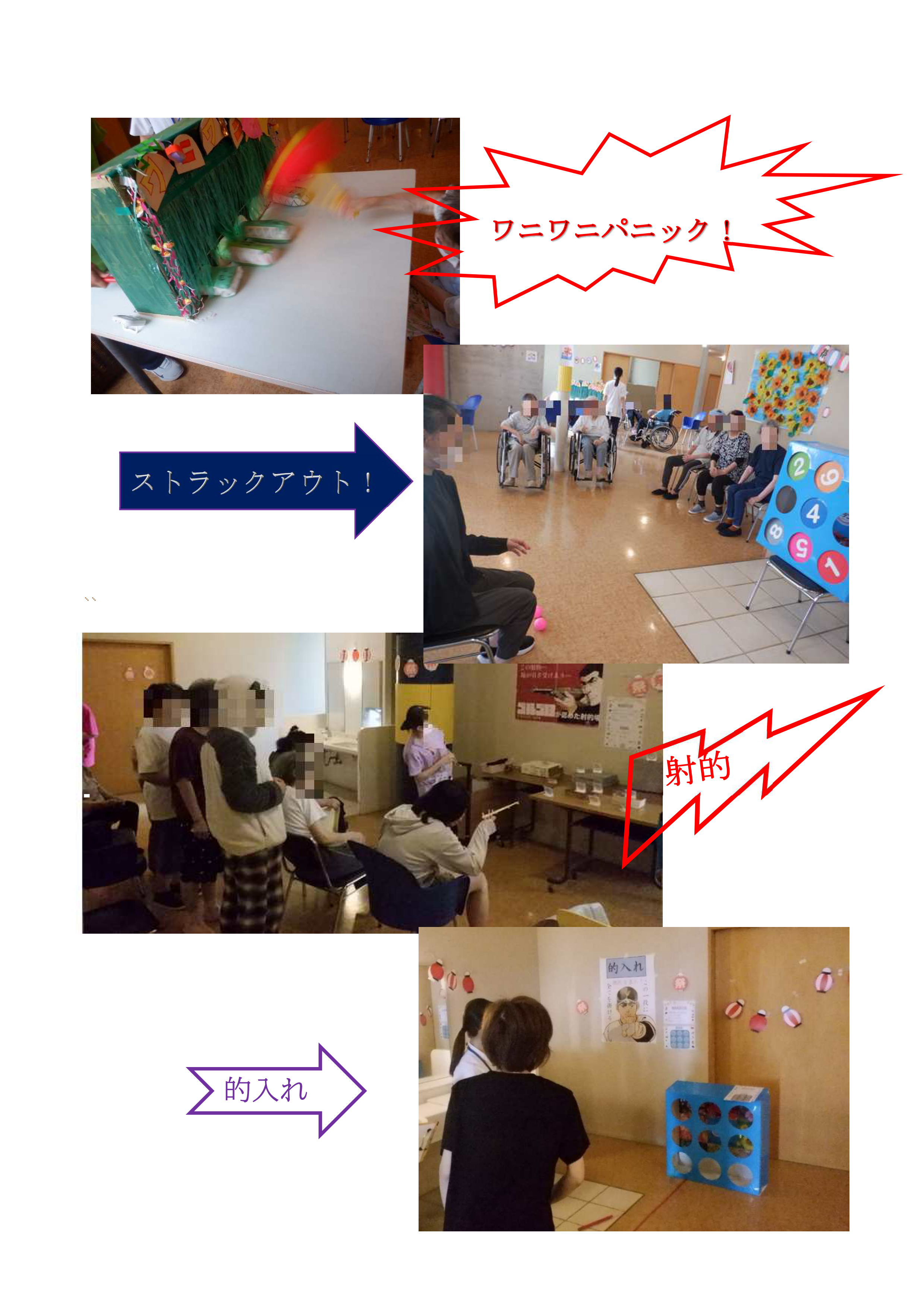 谷山病院 リハビリテーション科では7.8月に各病棟にて「夏祭り」「納涼祭」を開催しました。各病棟担当作業療法士が、それぞれの病棟の患者様に楽しんでもらえるよう、趣向を凝らしたレクリエーションを考え、病棟職員と一緒に開催しました。