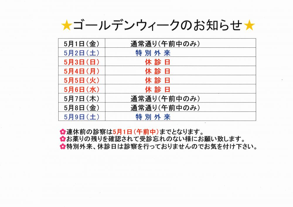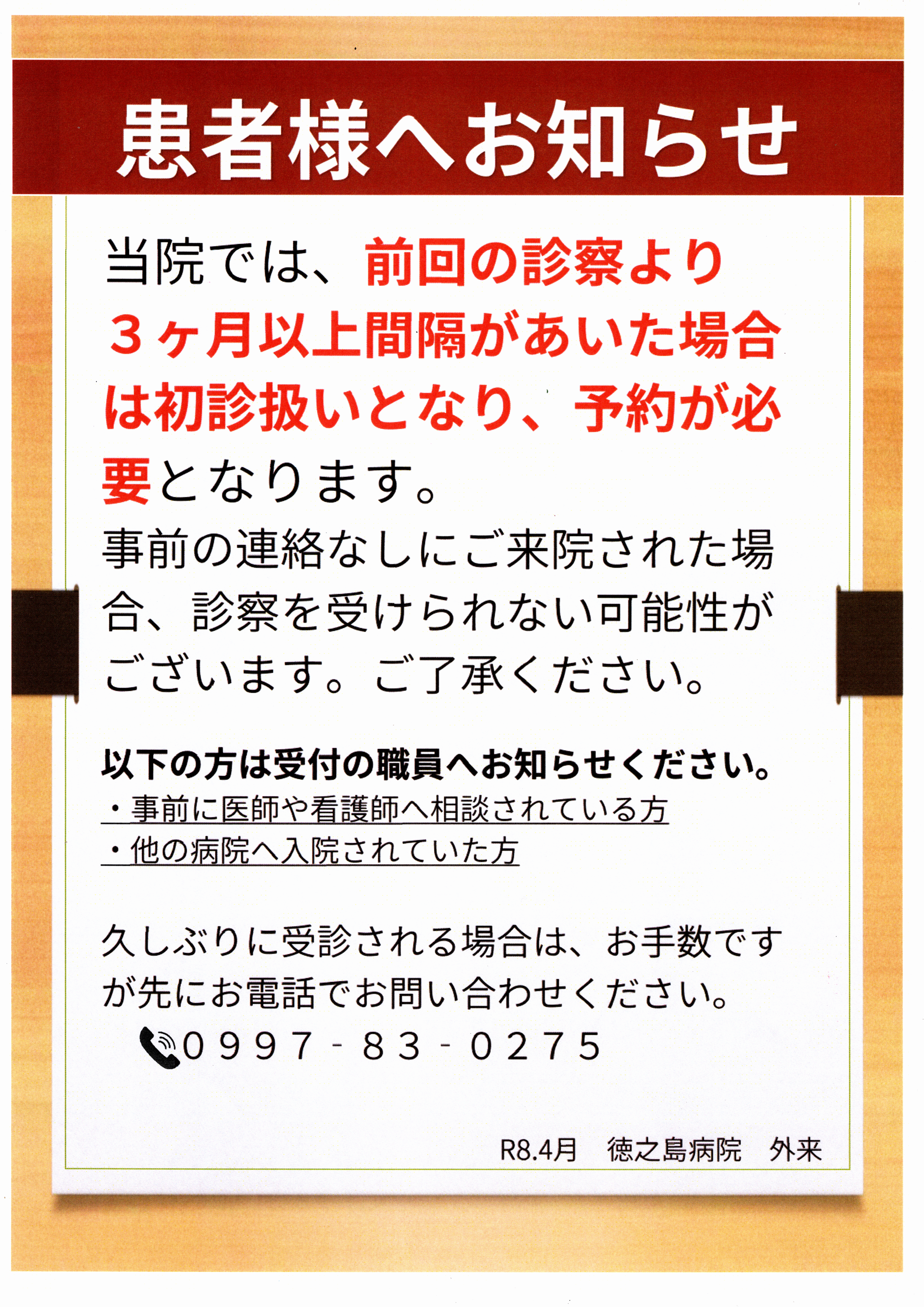 なお、症状の変化がある場合やお急ぎの際は、曜日にかかわらずご受診ください。