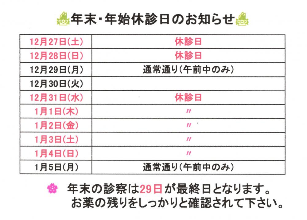 • 年末・年始休診日のお知らせ